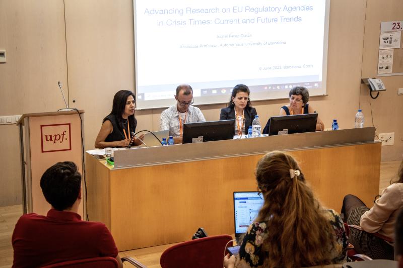 Ixchel Perez-Duran, Filiz Dogan, Patricia Garcia-Duran, and Robert Kissack speak on "Researching Crises: a multidisciplinary discussion on European studies", the closing panel of UACES's annual GF Research Conference.