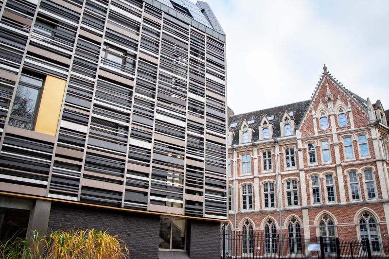The Catholic University of Lille is spread across several faculties. Built in several stages since 1951, Le Rizomm is a smart, energy- efficient building that produces and consumes electricity. The Rizomme is a flagship achievement of the live tree program.